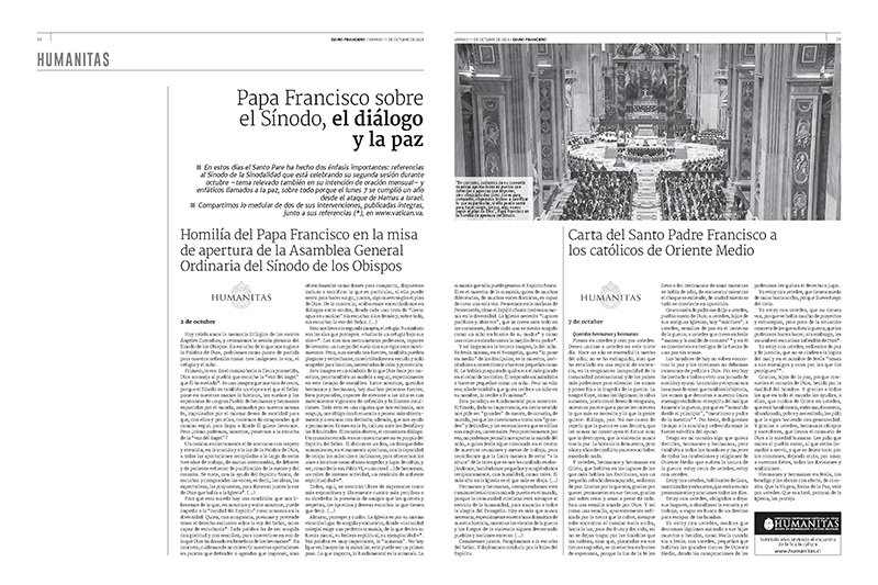 Desde el año 2003 revista HUMANITAS publica todos los viernes estas páginas en Diario Financiero. A solicitud de los usuarios de nuestro sitio web, ponemos a su disposición los PDFs de los artículos más recientes:
