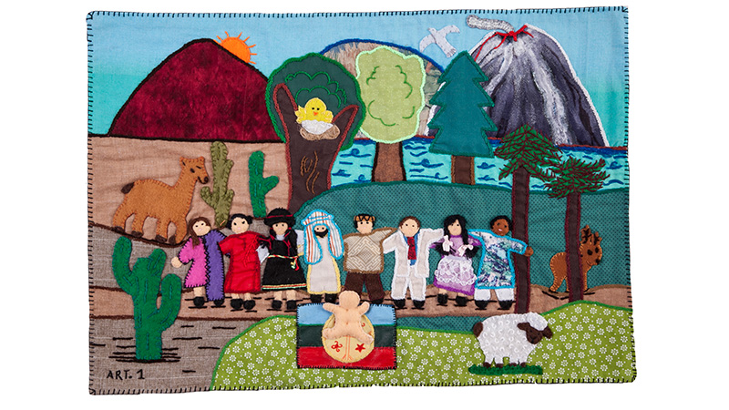 La exposición que hoy contemplamos es el resultado del Proyecto “Tejiendo y bordando esperanzas: los 30 artículos de la Declaración Universal de los Derechos Humanos en arpilleras”, realizado por la Fundación de Documentación y Archivo de la Vicaría de la Solidaridad y la Comisión de Cultura de la Asociación de Ex Trabajadores del Comité y la Vicaría, en colaboración con la Fundación Trabajo para un Hermano, en conmemoración de los 70 años de la Declaración Universal de los Derechos Humanos ( 1948) y de los 45 años del “Año de los Derechos Humanos en Chile”, convocado por el entonces Arzobispo de Santiago, el querido cardenal Raúl Silva Henríquez (1978).